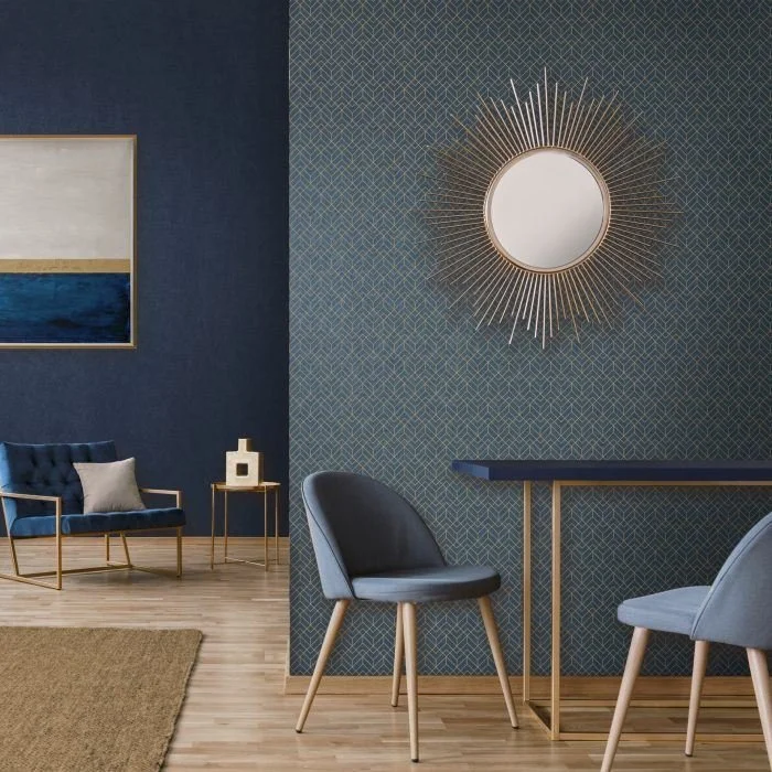 An industrial, worked metal embossed wallcovering with a metallic finish that co-ordinates with Manhattan.