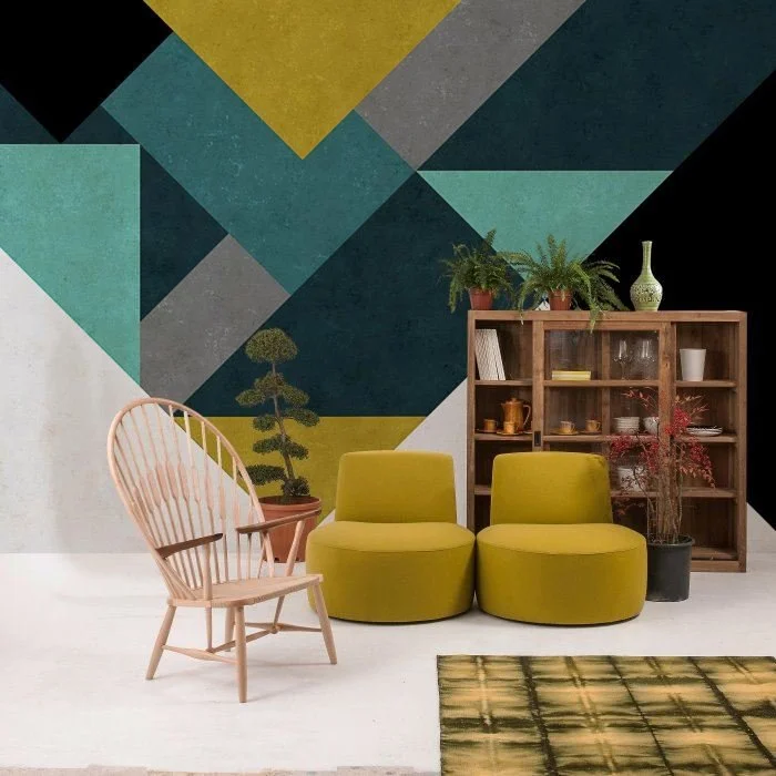 Inspired by painted concrete this geometric design, with its exposed wall background texture fits perfectly into the ever popular industrial trend. It can be recoloured and rescaled to fit perfectly into your scheme.
