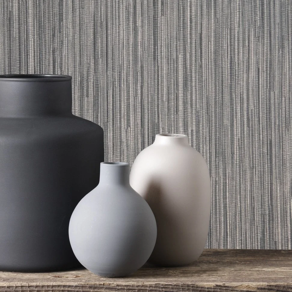 Embodying the best of both worlds, Kai features matte and shine, architectural and organic elements artfully combined with a clean and modern emboss to achieve and flawless come-and-go layered effect. The pattern’s parallel lines call to mind the layered buildings of a cityscape or a thriving bamboo forest, finished with metallic accents for added dimension and a subtle glint.