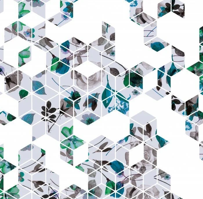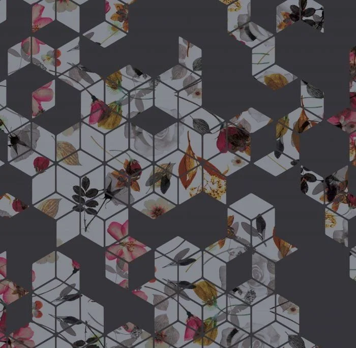 Look through the intricate lattice effect to see the delicate floral pattern peeping through. This design is a new perspective on the biophilic trend which changes dramatically depending on the colourway.