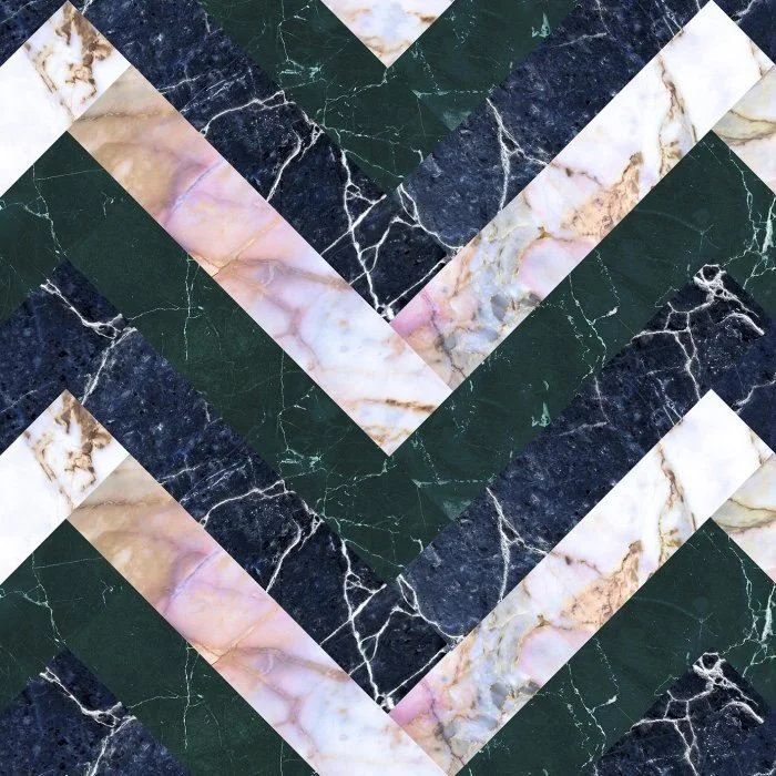 Herringbone is a timeless design classic, here we’ve reimagined it with 3 interlaced marble finishes which create an interesting and tactile focal point.
