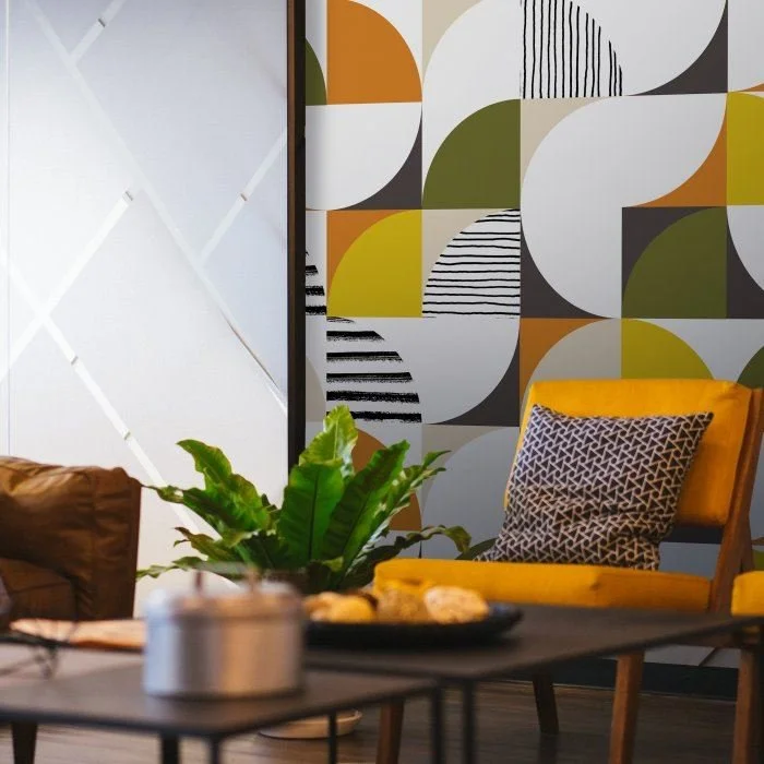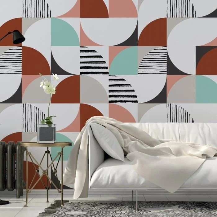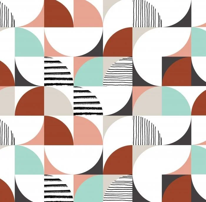 This design is all about the swinging 60’s. The retro colourings combined with the sharp graphic shapes are softened by the hand drawn lines making this a versatile mid century design that feels bang up to date!