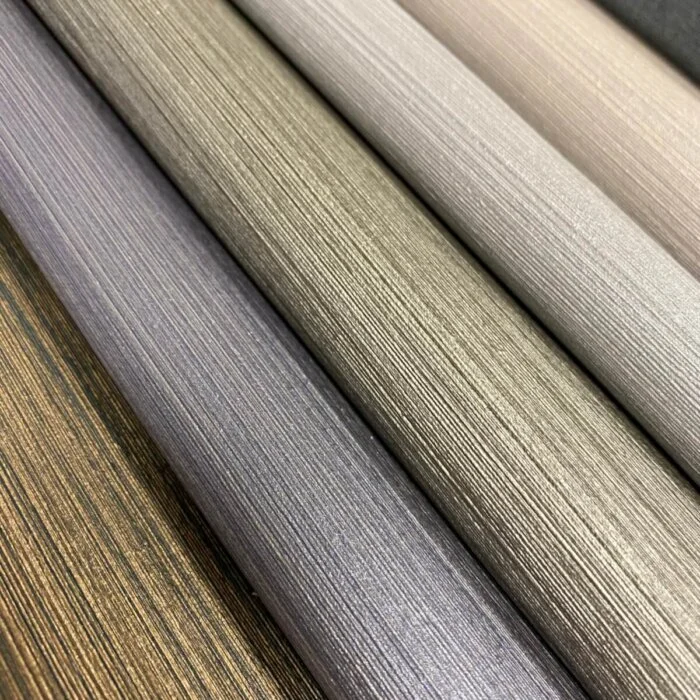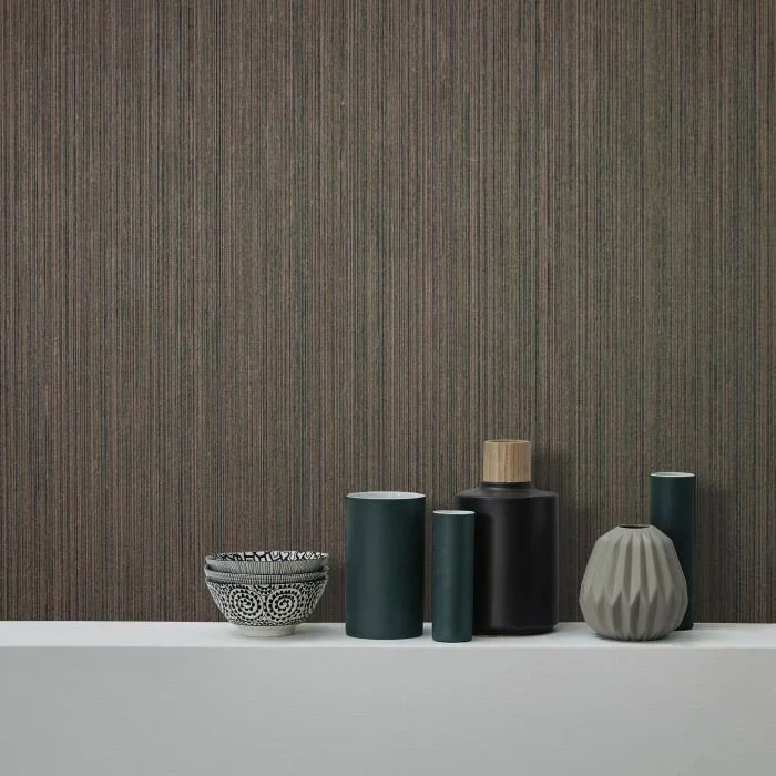 This vertical slubby silk emboss boasts metallic threads set against muted neutral shades.