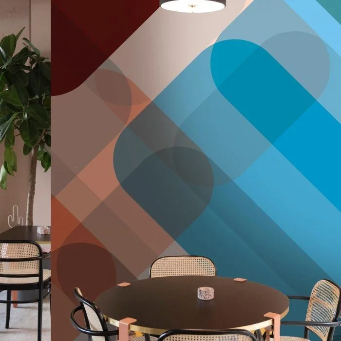 This large scale rounded geometric mural can be easily customised to suit your scheme and printed onto any of our wallcoverings or window films.